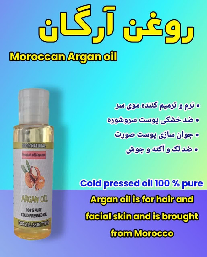 روغن آرگان مراکشی 30 سی سی (تقویت پوست و مو و درمان شوره سر و نرم کننده مو و اصلاح ناخن و..)