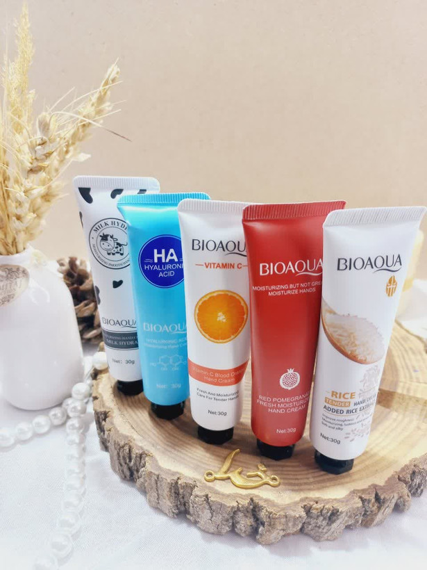 کرم مرطوب کننده دست بیوآکووا پک 5عددی شامل کرم برنج و کرم انار و کرم شیر گاو و کرم ویتامین سی و کرم هیالورونیک اسید و...