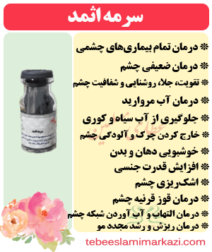 سرمه اثمد (درمان ضعیفی چشم، تقویت، جلا و شفافیت چشم، درمان آب مروارید، جلوگیری از آب سیاه و کوری، خارج کردن چرک و..)